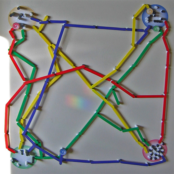 is played on a refrigerator with magnetic popsicle sticks. The goal is to be the first to touch each other player's home base.