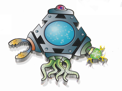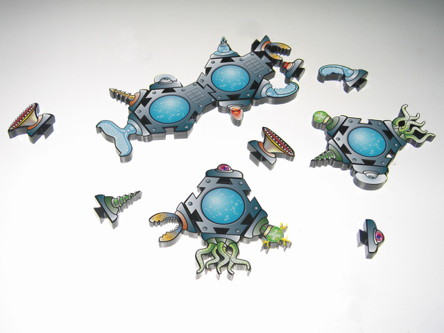 These are some pieces from the board game that is almost finished. You must eat food and grow while battling other nanobots. The first nanobot to grow 4 body segments wins. Click here for the current rules. |