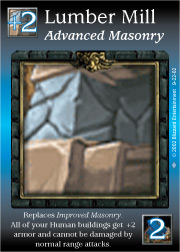 All of your Human buildings get +1 armor and cannot be damaged by normal range attacks. |