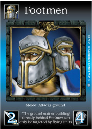 Melee: Attacks ground. The ground unit or building directly behind Footmen can only be targeted by flying units. |