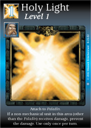 If a non-mechanical unit in this area (other than the Paladin) receives damage, prevent the damage. Use only once per turn. |
