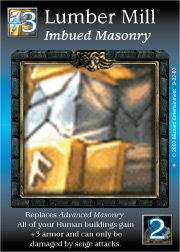 All of your Human buildings gain +3 armor and can only be damaged by seige attacks. |