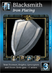Your Footmen, Knights, Gyrocopters and Steam Tanks gain +3 armor. |