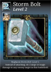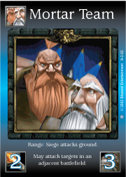 Instead of attacking, do 2 siege or magic damage to any enemy target in this battlefield. |