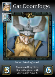 This is an unpublished card game based on Blizzard's Warcraft III computer game. Players collect cards to create a customized army of heroes, units and buildings in an attempt to be the first to take control of a central gold mine.
