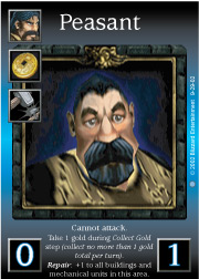 Cannot attack. Take 1 gold during Collect Gold step (collect no more than 1 gold total per turn). Repair: +1 to all buildings and mechanical units in this area. |