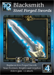 Your Footmen, Knights and Gryphon Riders gain +2 attack. |